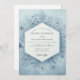 A delicate winter wonderland theme unfolds with frosty blooms and icy foliage in enchanting shades of slate blue. The intricate snowflake patterns create a serene and magical atmosphere, perfect for a cool-weather celebration.