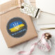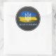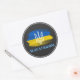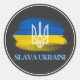 Ukrainische Flagge Farben blau und gelb Fahne mit SLAVA UKRAINI Glory to Ukraine Logo. Unterstützen Sie das ukrainische Volk! Runder Aufkleber.