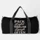 Erleben Sie Ihre Abenteuer mit dieser eleganten, schwarzen Tasche mit fett weißer Typografie, die lautet "Pack Light, Travel Far, Lachen Often". Dieses weitläufige und langlebige Tasche vereint Stil und Praxisnähe und eignet sich perfekt für Wochenendaufenthalte, Sportsendungen oder Tray-On-Reisen. Seine motivierend Botschaft inspiriere Wanderlust, während das zeitlose Schwarz-Weiß-Design es zu einem vielseitigen Accessoire für jeden Reisenden macht. Personalisieren oder schenken Sie es für Reisende, Fitness-Liebhaber, und alle, die stilvolle Organisation auf Reisen schätzen.