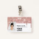 Dieses Custom TRendy Sleek Glam Employee Name Abzeichen ist einfach mit Foto, Scan Bar Code und Business Logo, inklusive Metallklammer, zu personalisieren. Ein trendiges, mädchenhaftes Design, links in niedlich-schimmernder Rose goldglänzende Imitate Folie und luxuriöse Glitzer Tropfen vollständig anpassbar vor und zurück, sans-serf einfache und moderne Schriftart und ein berufliches und klares Aussehen. Verfügbar mit oder ohne Lanyard, Metallklammer oder mit Retraktierbar. Keine Mindestbestellung.