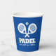 Essen Sleep Play Padel lustige benutzerdefinierte Farbe Papier Becher. Crossed Schläger Design für Kinder und Erwachsene. Personalisieren Sie mit Ihrem eigenen Text. Party für Paddelspieler, Tennisfreunde, Klub, Team etc. Blauer oder farblich angepasster Hintergrund. Ideal für Geburtstagsfeier, Sportereignis und vieles mehr.