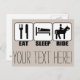 Sleep Ride ein Pferdereiten Pferdereiten Postkarte: Eine lustige, anpassbare Postkarte für seriöse Reiter. Kann als Einladung für Reitkurse und Aktivitäten verwendet werden. Ersetzen Sie einfach den Platzhalter-Text - Ihr Text hier! - mit Ihrer eigenen, individuellen Nachricht, wie Name, Slogan, kurze Ankündigung, etc.