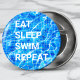 Dieses moderne Design bietet einen strahlend blauen Pool gefliesten Hintergrund mit dem Text "Eat Sleep Swim Repeat" in der modernen Typografie #accessoires #buttons #favors #partyfavors #gifts #custom gifts #giftsforgirls #swimming #giftsformmers