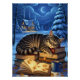 A cozy winter illustration featuring a peaceful sleeping cat curled atop a stack of books beneath a moonlit, snowy night. Warm light from a distant cottage, drifting snow, and scattered pages create a comforting, storybook atmosphere. Perfect for book lovers, cat enthusiasts, and anyone who enjoys calm, cozy wall art that brings warmth and charm to reading nooks, bedrooms, or living spaces.