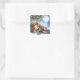 Sleeping Christmas Elf with Calico Kitten Quadratischer Aufkleber