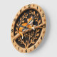 Invite the warmth of nature into your home with this charming wall clock featuring a high-definition image of a sleeping orange tabby cat. The peaceful feline is depicted napping atop a rustic branch, surrounded by a graceful arrangement of carved-style leaves that create a beautiful autumnal aesthetic. Set against a dark, vertically-planked wood-textured center, the vibrant orange and white fur of the cat creates a striking focal point. The outer rim features a light wood grain print with bold black numbers and delicate leaf accents at the hour markers for easy reading. While the artwork offers a rich, layered 3D-style depth, the clock itself is a lightweight and durable graphic timepiece. This high-energy design is perfect for adding a cozy, sophisticated touch to a living room, hallway, or study, celebrating the quiet beauty of a resting pet.