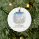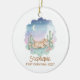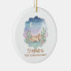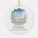 Celebrate a magical milestone with this watercolor desert scene featuring a serene sleeping pony nestled among blooming cacti. The soft pastel sunset and celestial moon create a peaceful atmosphere perfect for a newborn's commemorative keepsake. This whimsical design blends Southwestern charm with a dreamy aesthetic to capture the wonder of a very special first holiday.