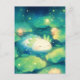 Sleeping White Axolotl in Magical Night Lotus Pond Postkarte