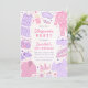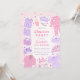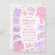 Mit unserer Sleepover Geburtstagseinladung laden wir Sie in Ihr Party ein. Rosa und lila Design mit Schlafmasken, Hausschuhen, Pizza, Popcorn, Nagellack und weiteren PJ-Party-Elementen.
