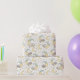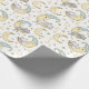 Ein schöner, glänzender, grauer Kätzchen auf dem Tapetenpapier