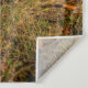 Ein niedlicher junger Fuchs mit kaum offenen Augen genießt seinen sonnigen Ruhestand mit Herbstfarbe.