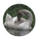 Dieses phantastische Dartboard zeigt ein Foto eines wunderschönen Schwans. Der Schwan ist ein junger Vogel, man erkennt die grauen Federn am Kopf und das Fehlen eines orangefarbenen Schnacks. Es sieht so aus, als schliefe der Schwan, aber er beugt tatsächlich seinen Federn vor.