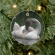 Dieses hübsche, im Stil eines Anhängers gehaltene Ornament zeigt ein Foto eines wunderschönen Schwans. Der Schwan ist ein junger Vogel, man erkennt die grauen Federn am Kopf und das Fehlen eines orangefarbenen Schnacks. Es sieht so aus, als schliefe der Schwan, aber er beugt tatsächlich seinen Federn vor.