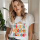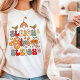 Sleigh Girl Sleigh Groovy Moderne Weihnachtsfrauen T - Shirt zeigen den farbenfrohen festlichen Text "Sleigh Girl Sleigh" in der modernen Scipt-Typografie mit Heiligen, einem Regenbogen, Gänseblümchen, Stars und frommen Charakteren. Ideal für Weihnachten und Feiertage. Erstellt von Evco Holidays www.zazzle.com/store/evcoholidays