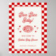 Slice Slice Baby Shower Welcome Sign: italian-themed and checkered red and white for this cute baby shower sign. This retro design is perfect for a pizza themed party and a fun celebration.