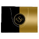 Modernes Gold und Schwarz geometrisches Design mit maßgeschneidertem Monogramm.