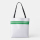 Dieses schicke, sportliche Design zeichnet sich durch einen weißen Hintergrund mit zwei kelly grünen schlanken, horizontalen Rennstreifen am oberen Rand aus.