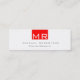 Slim Modern Monogram White Red Business Card Mini Visitenkarte