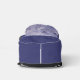 Horses running in the surf, with flying manes and tails, hooves in mid-air. Image is centered on pocket. Remainder of bag is a dark blue. Photograph of original ceramic relief image has been tinted a purplish blue. Artwork by Nora Chen.