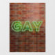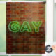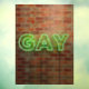 SlipperyJoe leuchtete schwulenneonsignatur leuchtend lebendig grüne Leuchtbriefe montiert rotbraunen Backstein Wand Gay Pride Geschenke Identität feiern LGBTQIA städtische industrielle Look Feier Liebe Identität Gemeinschaft leben Ihre Wahrheitswahrheit Power lebhafte Glanz Kontraste strukturierte Hintergrund schlanke elektrische Kurven Gießen lebendige Aura