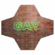 SlipperyJoe leuchtete schwulenneonsignatur leuchtend lebendig grüne Leuchtbriefe montiert rotbraunen Backstein Wand Gay Pride Geschenke Identität feiern LGBTQIA städtische industrielle Look Feier Liebe Identität Gemeinschaft leben Ihre Wahrheitswahrheit Power lebhafte Glanz Kontraste strukturierte Hintergrund schlanke elektrische Kurven Gießen lebendige Aura