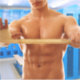 SlipperyJoe muskulöser Mann abs Schließraum Fliesenboden Gay Pride Geschenke LGBTQIA künstlerisch gestreckte Gymnastik Band Shirless definierten Torso Arme Sechspack blaue Schließer hölzerne Bänke Sportanlage Greiffestigkeit Shirless Brust 6 Pack