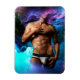 SlipperyDer muskuläre Mann unter Tragen kräftige Farben blauer aquamarine lila Cloud-ähnliche Abstraktion Gay Pride verleiht LGBTQIA künstlerisch traumhafte abstrakte Energie psychedelische Surrealismus kosmische Wirkung surreal und fantasievoll Hintergrund Hand Erholungen über Brust