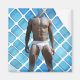 SlipperyJoe muskulöser Mann Sechserpack abs männliche, weiße Unterwäsche Gitter blau Diamantform Fliesen moderne digitale Oberfläche Hintergrund künstlerische Abstraktion Gay Pride Geschenke LGBTQIA Fleisch und Pixel kollidieren unwirkliche Träume Fusion einzigartige Visuals fett Design