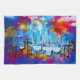 SlipperyJoe NYC Graffiti-Mond umgab wirbelnde dramatische Wolken Himmelsfarbengradienten vid surreal cityscape Fantasy Wolkenkratzer Gebäude Mashup städtischen Grit künstlerische kosmische traumhafte Kulisse Gay Pride Geschenke LGBTQIA Blues fieberrote Purpel leuchten Träume fast sfi narrative coole Tones Theaterenergie