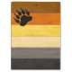 SlipperyJoe's Bärenpride-Fahne Holzfußboden-Textur mit Pfotenprint dunkelbraunes, hellgelbes, schwarzes, schwarzes LGBTQIA künstlerische horizontale Streifen Gay-Geschenke Diversity Pelz Nationalitäten Subkultur LGBTQ+ Community