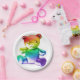 SlipperyJoe's brushed Metal Teddy Bär Regenbogenverlauf feiert Liebe künstlerische Gay Pride Geschenke LGBTQIA sitzende Arme überdehnt lächelnd Mund