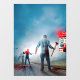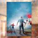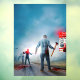 SlipperyJoe's fröhliche Halloween-glühende Augen Zombies Ausbruch Quarantäne-Zeichen männliche Überlebende stehen Vordergrundinfektion Gasmaske-Flugzeuge platzierten Blutflecken mysteriöse Figuren postapokalyptische zombie-infizierte Welt, bewaffnet mit Vorschlaghammer für den Kampf künstlerisch dunkler Himmel trostlose Landschaft LGBTQIA Gay Pride Geschengeschenke