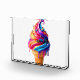 SlipperyJoe's lebhafte Eis-Kegel-Küche klassische Waffelkegel Dessert verströmt Energie Freude wirlende Mischung aus Regenbogenfarben köstliche verschiedene Farben Sprinklen glänzend leicht geschmolzenen Aussehen köstlich gefühlvolle Textur Gay Pride Geschenke LGBTQIA hellrosa lebendig orange sonnengelb tief lila fröhlich einladend vibe