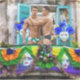SlipperyJoe's Mardi Gras maskiert Perlen Dekorationen Speedos lebhafte geschmückte Balkon grün gelb lila Stoffe Männer umarmen einander feierliche festliche Atmosphäre alten Gebäude verwitterte Wände Fensterläden LGBTQIA Gay Pride Geschenke neue Orleans