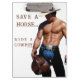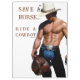 SlipperyJoe's rettend Pferderückfahrt Strohhut, der muskulöser Mann ohne Rumpf, der den Sattel mit einem gut definierten, körperlich geziselten Sechserpack hält, der den Sattel mit schwarzem Gürtel in silbernen Schnallen-Rändelmuskeln in den Artisten-Western-Vibe kelt, die LGBTQIA-Jeans