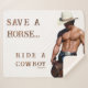 SlipperyJoe's rettend Pferderückfahrt Strohhut, der muskulöser Mann ohne Rumpf, der den Sattel mit einem gut definierten, körperlich geziselten Sechserpack hält, der den Sattel mit schwarzem Gürtel in silbernen Schnallen-Rändelmuskeln in den Artisten-Western-Vibe kelt, die LGBTQIA-Jeans