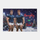 SlipperyJoe's geschmückte schneebedeckte Weihnachtsbäume Feiertag bunten, lebendige Saitenleuchten Zwillinge muskulösen Männer Brust sexy abs sechs Pack Bauchschneeunterwäsche festliche schöne Winterwunderland fallende weiße Schneeflocken LGBTQIA künstlerisch enge marineblaue Shirts Gay Pride Geschenke Weiße Slips Naughty Nice Lichter Ornamente rote grüne rote Buchstaben