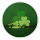 SlipperyJoe's St. Patrick's Day-Themen-Loboldhüte mit gelben Schnallen goldene Kleeblätter dreidimensionales Aussehen große mehrschichtige dreiblättrige Kleeblätter dekorative Bühnen-ähnliche Kulisse Glanz und irische Feiergeschenke glatte minimalistische 3D-Formen goldene Ringe gerahmte runde Plattform reicher grüner Hintergrund festlich poliert moderne Tradition