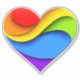 SlipperyJoe's Stolz Herzkurven Form 3-D dreidimensionalen Aussehen Regenbogen feiert Liebe künstlerisch ansprechende Farben Gay Pride Geschenke LGBTQIA rot-orange-gelb blau lila glatte Welle-like Aussehen vibrant dynamische Bewegung Grafik Design