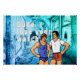SlipperyJoe's Unterwäsche zwei Männer Cartoon aufgegeben Gebäude blaue Aqua-rote Hosen Glas Juwelier 60's künstlerische Schwulengeschenke LGBTQIA