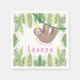 Feiern Sie Ihren Geburtstag mit diesen niedlichen Geburtstagsnapkins! Mit einem hübschen, handbemalten Faultier in einem rosa und gelben Party, das im Dschungel herumhängt. Niedliche Blume in Gelb und Rosa zieren die Blätter des Dschungels.