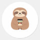 Sloth Coffee Time Classic T - Shirt Runder Aufkleber