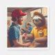 Die Einführung unseres zauberhaften Fastfood-Mitarbeiters Sloth. Unser Faultier, das Wesen der Geduld und Pflege, ist bereit, jedem Kunden in seinem eigenen Tempo zu helfen. In einer Fast Food Restaurant-Uniform dekoriert, hilft er am Schalter einem Kunden. Diese Alltagsszene, beleuchtet durch sanfte Beleuchtung, ist ein Beleg für das Sprichwort - gute Dinge kommen zu denen, die warten. Dieses Design ist perfekt für diejenigen, die Liebe Schläge und Fast Food.