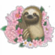 Ein niedlicher Faultier mit rosa Blume vor blauem Hintergrund