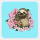 Sloth Pink-Blume Quadratischer Aufkleber