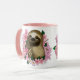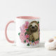 Ein niedlicher Faultier zwischen rosa Blume vor blauem Hintergrund