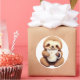 Ein Faultier lächelt in entspannter Lage. Es hält eine Tasse. Ein hübscher Gesichtsausdruck, der den friedlichen Augenblick des Genusses eines warmen Getränks unterstreicht. Seine charakteristischen langsamen Bewegungen und Entspannung.