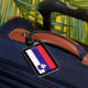 Gepäckanhänger von Slowenien. Dieser Umbau hat Ihre Landflagge auf ihm in den wirklichen Farben und auf der Rückseite Ihr ganzes Zuhauseinfo zu Ihrer Sicherheit Ihrer Taschen