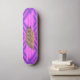 Dieses Skate Board hat einen braunen und Ingwerschlauch in der Mitte. Der Hintergrund besteht aus einer Mischung aus lila und rosa Linien, die Diamant bilden, und Pfeilformen auf dem Skateboard.