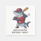 Ein spielerischer Cartoon eines Hais in Baseballuniform, bereit, seinen Schläger zu schwingen, perfekt für eine sportliche Geburtstagsparty! Der Hai trägt eine Kappe mit dem Buchstaben "S", ein Trikot mit der Zahl "5" und eine weiße Hose. Ein fröhliches und aktionsreiches Design, das jedem Fest Energie und Spaß bringt. Der schlichte weiße Hintergrund sorgt für eine einfache Handhabung bei Einladungen, Dekorationen oder Gastgeschenken.